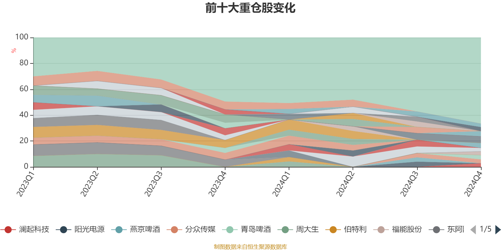 截至2024年四季度末,基金十大重仓股分别是彩虹股份、天润乳业、韦尔股份、青岛啤酒、鼎通科技、分众传媒、福能股份、澜起科技、三美股份、兆易创新。